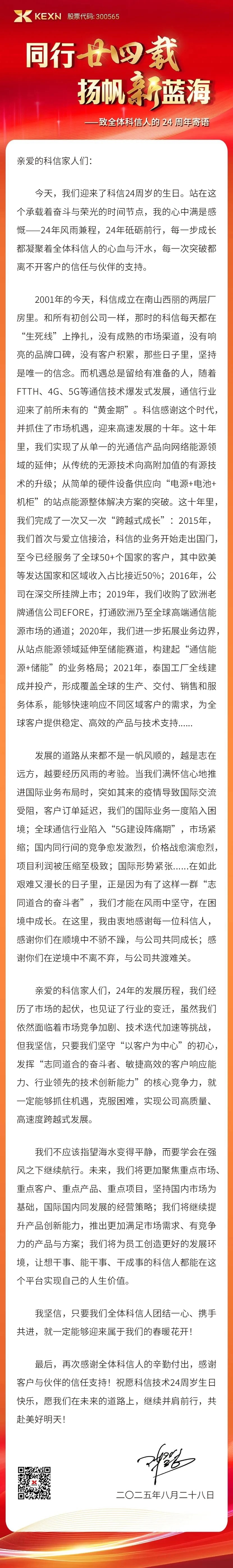 同行廿四載,揚帆新(xin)藍海——緻全體(ti)科(ke)信(xin)人(ren)的(de)24周年(nian)寄語
