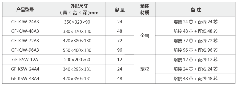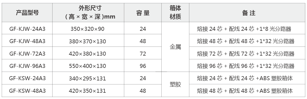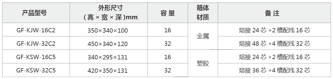Ø 室內(nei)型産(chan)品(pin)時可(kě)适用(yong)于(yu)主(zhu)幹光纜掏接應用(yong);