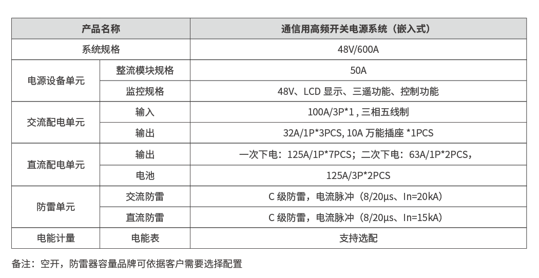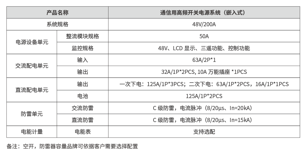 本(ben)産(chan)品(pin)爲(wei)嵌入式(shi)開關電(dian)源,用(yong)于(yu)直接安(an)裝(zhuang)在(zai)通(tong)信(xin)設(shè)備(bei)機(jī)櫃內(nei)爲(wei)通(tong)信(xin)設(shè)備(bei)供電(dian)。本(ben)産(chan)品(pin)最多(duo)安(an)裝(zhuang)12箇(ge)48V/50A整流模塊,配(pei)有(yǒu)監控模塊,電(dian)池咊(he)負載接口分(fēn)别由各自的(de)斷(duan)路器(qi)保護,正面操作(zuò)、接線(xiàn)。